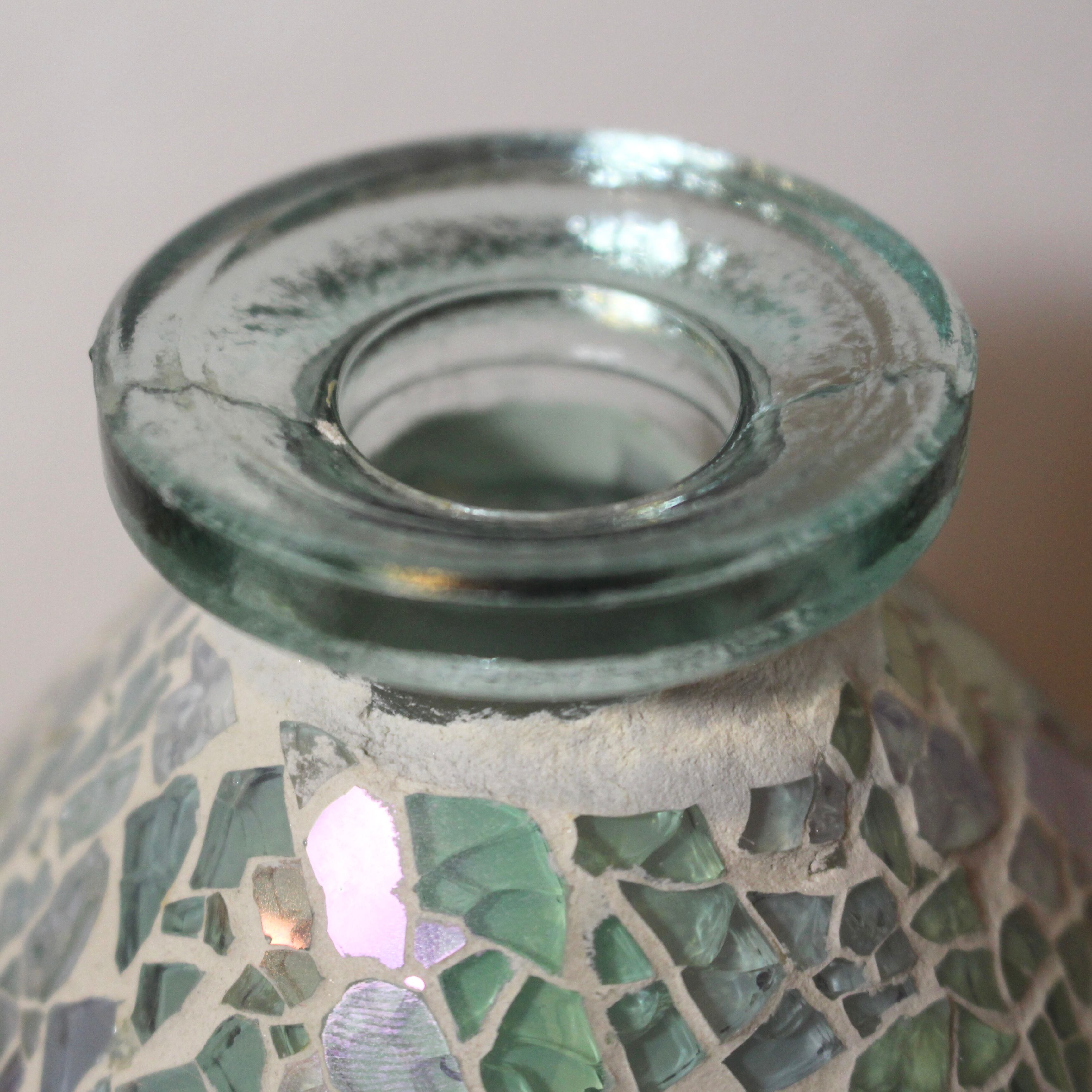 職人による手作業で1つ1つモザイクを組み合わせ柄を表現したフラワーベースです。